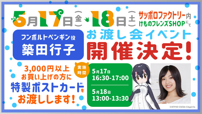 「けものフレンズ3 SHOP 2024 in SAPPORO」5/17・18 フンボルトペンギン役築田行子お渡し会開催決定!