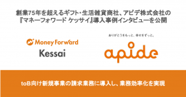 マネーフォワードケッサイ株式会社は、ギフト用品などの卸販売・企画開発を行うアピデ株式会社の導入事例インタビューを、本日公式WEBサイトにて公開したことをお知らせします。