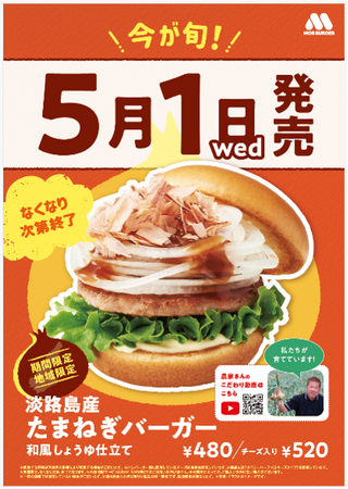 モスバーガーを展開する株式会社モスフードサービス(代表取締役社長:中村 栄輔、本社:東京都品川区)では、2024年5月1日(水)~5月中旬まで、モスの契約農家の畑で栽培された淡路島産の新たまねぎを使用した『2024年度淡路島産たまねぎ祭り』を、関西と四国地域のモスバーガーにて期間限定で開催します。