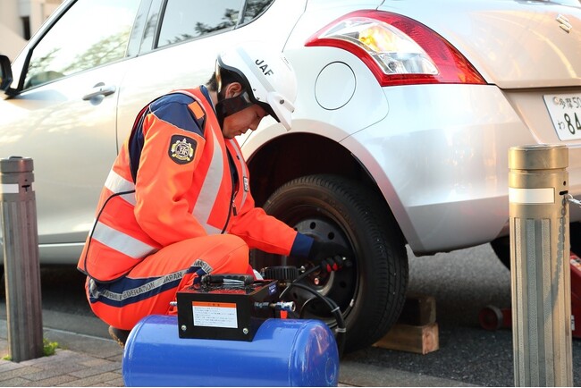 JAFでは、応急修理が不可能なタイヤトラブルに対応するため、各都道府県(一部地域を除く)において、タイヤの貸し出しサービスを実施しています。