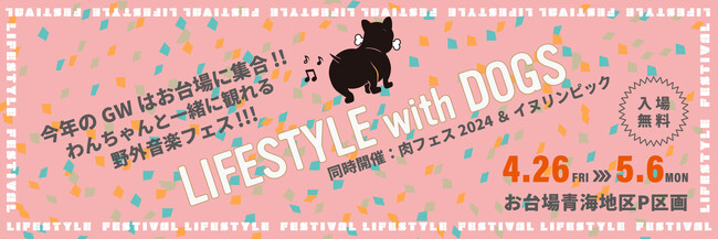 LIFESTYLE with DOGS 実行委員会は、4/26(金)~5/6(月・祝)の11日間、東京・お台場で犬と同伴で1日満喫できるイベント【LIFESTYLE with DOGS】を開催します。