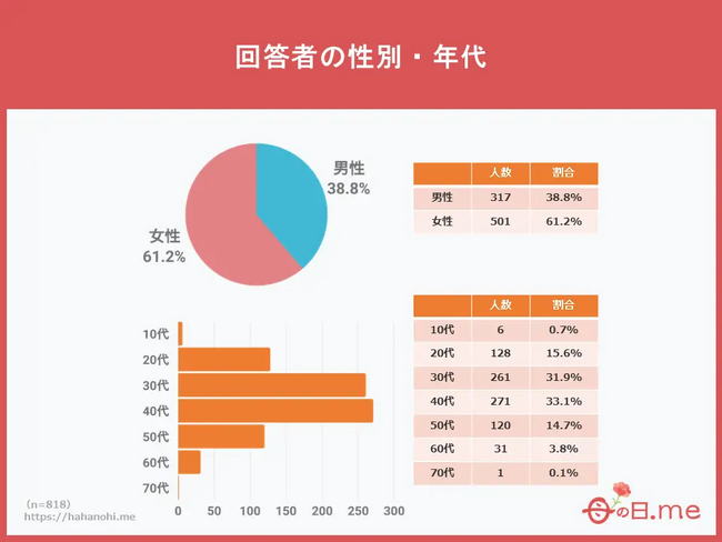 母の日.me調べ。10~70代の男女(計818名)を対象にした実態調査アンケート。
