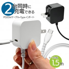 「2台同時充電可能」PD20W対応Type-Cケーブル一体型のAC充電器を発売!