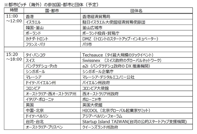 ※都市ピッチ(海外)の参加国・都市と団体(予定)