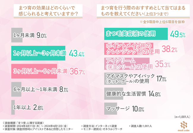 株式会社メディキューブ(所在地:東京都中央区、代表者:稲川 竜生)は、アイリストを対象に「まつ育」に関する調査を実施しました。