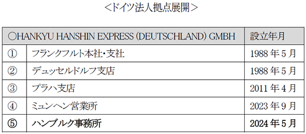 阪急阪神エクスプレス(本社:大阪市北区 代表取締役社長:谷村 和宏)のドイツ法人であるHANKYU HANSHIN EXPRESS (DEUTSCHLAND) GMBH(本社:フランクフルト)は、ドイツ北部のハンブルク市に新たにオペレーション事務所を開設し、5月2日より営業を開始しました。