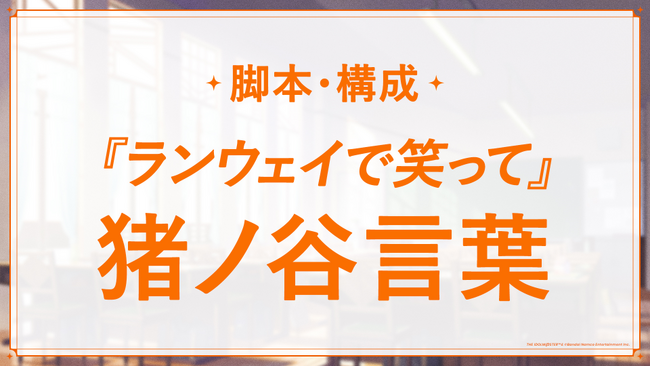 脚本・構成は、『ランウェイで笑って』の猪ノ谷言葉先生が担当いたします。