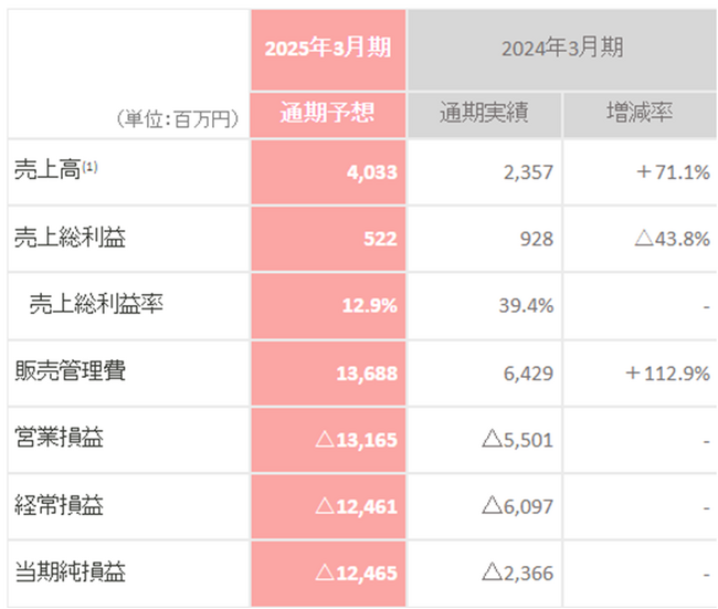 2025年3月期の売上高は、前期同様、ミッション3を主とするペイロードサービスが牽引する見込みです。昨年度対比で+72%の増加、過去5年間では年平均+68%の増加を見込んでおります。なおミッション4以降に伴う売上高は、現時点では保守的に織り込んでおりません。