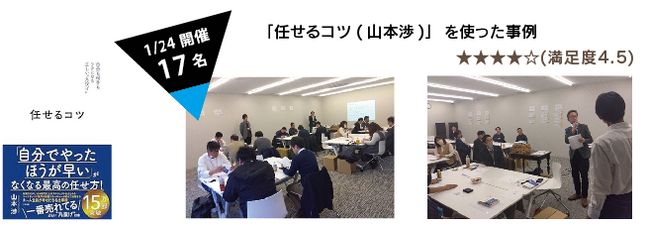 ・任せる事が出来ずに自分が大変になってしまうのは企業の他の皆様も同じ悩みを持っていて安心した。会社の大小は関係ないとの事なので本の内容を参考にしていきたい