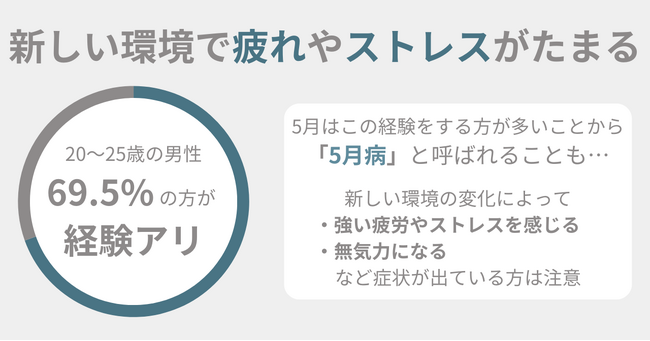 69.5%の男性が新しい環境で疲れやストレス感じたことアリ。ゴールデンウィーク後の5月病に注意?