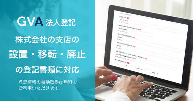 リーガルテックサービスの開発・運営を行うGVA TECH株式会社(本社:東京都渋谷区、代表取締役:山本 俊)が運営するオンライン商業登記支援サービス「GVA 法人登記」にて、株式会社の支店の設置・移転及び廃止の登記申請書類作成に対応したことをお知らせいたします。
