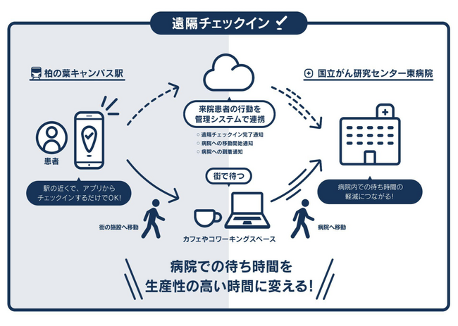 「まち全体を病院の待合室にする」患者向け遠隔チェックインサービスが国立がん研究センター東病院の病院情報システムと相互連携して実証を開始。