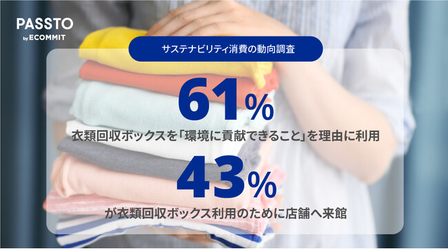 <サステナビリティ消費の動向調査>衣類回収ボックスを「環境に貢献できること」を理由に利用(61%)衣類回収ボックス利用のために店舗へ来館(43%)