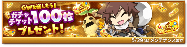 GW記念のプレゼントとして、ゴールデンガチャチケット100枚を期間中の初回ログイン時にお贈りします。