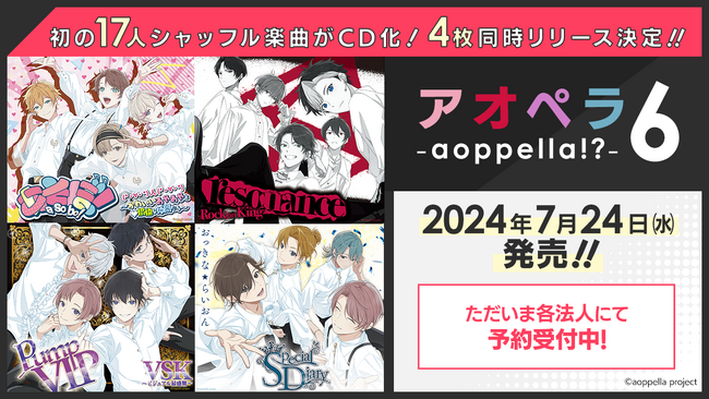 2024年7月24日(水)に発売予定の第6弾CD「アオペラ -aoppella!?- 6」は、17人を4グループに再編成した初のシャッフル楽曲を収録。
