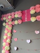 CAFETELのイメージカラーでもある、ピンクや黄色の2色のペーパーフラワーでつくりあげられた神社。