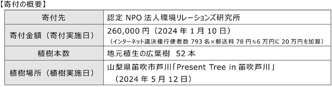 インターネットでの議決権行使による郵送費削減額等の寄付およびこれに基づく植樹の実施について
