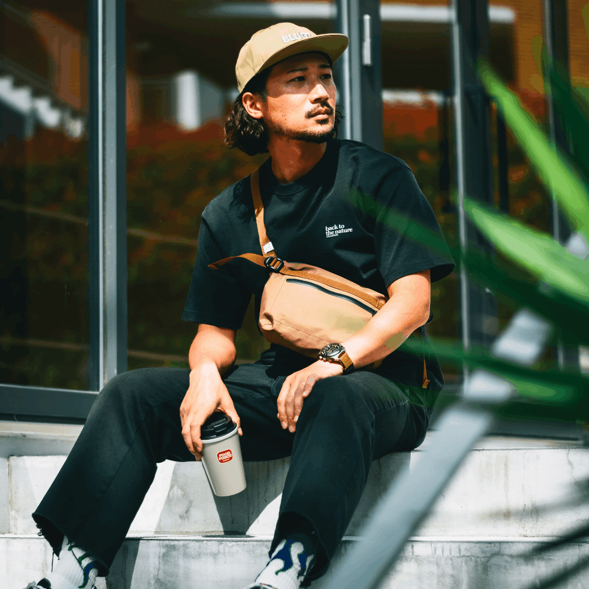 500mlのボトルもすっぽり入るこの時期大人気のショルダーバッグ。防水ファブリックと見た目以上の収納力で、フェスやキャンプ、トレッキングなどで活躍。デザインはスッキリとアーバンテイストにまとまっているので、普段使いでもスタイルを選ばず持ち出せます。