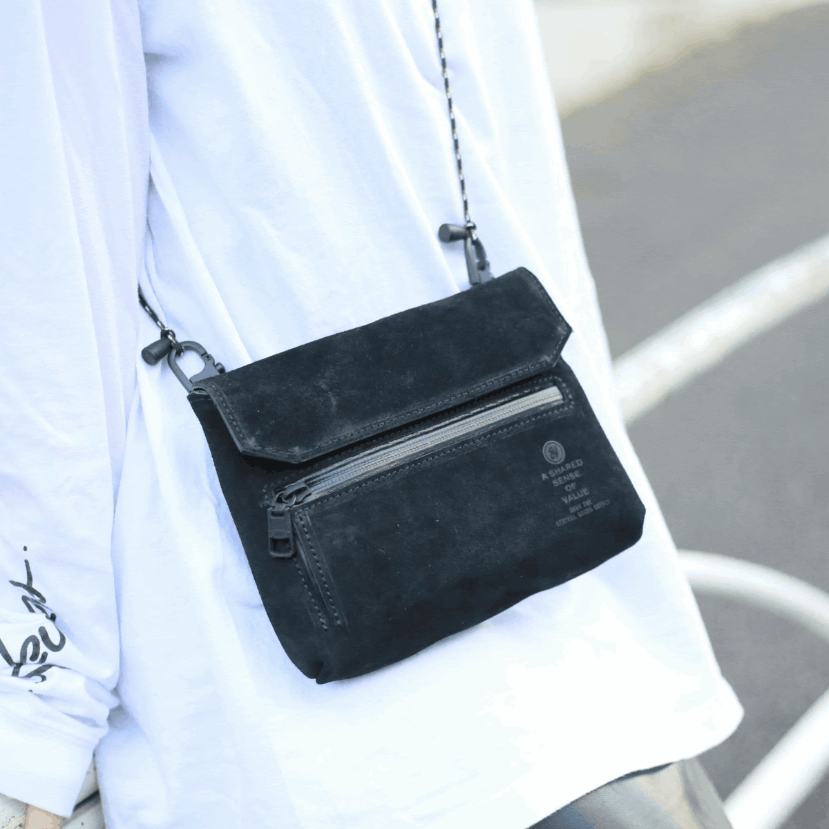 こちらもポーチとしても使える2WAY薄マチショルダー。前面と背面にジップポケットがあり、フラップを開けたメイン収納には貨幣やクレジットカードを直接入れておけるポケットが配置されています。「なるべく身軽に、だけどポケットだけでは入りきらない」そんな時に嬉しいショルダーです。