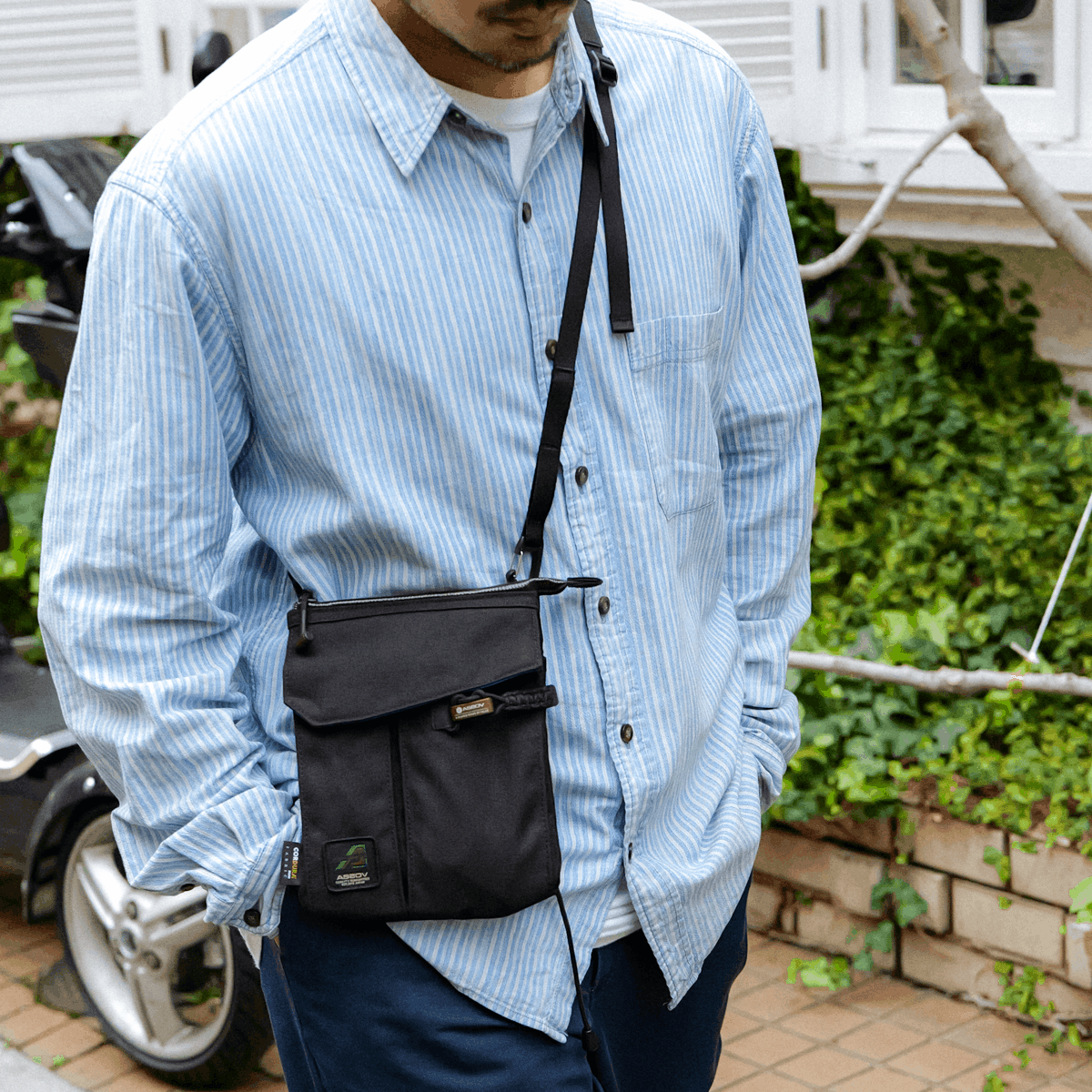 ちょっと出かける時に持ちたい薄マチショルダー。スマートホンや鍵、電子タバコなどがジャストフィットするフロントポケットに、本や財布を入れるのにちょうどいいメイン収納などトラベルのサブバッグとしても優秀です。