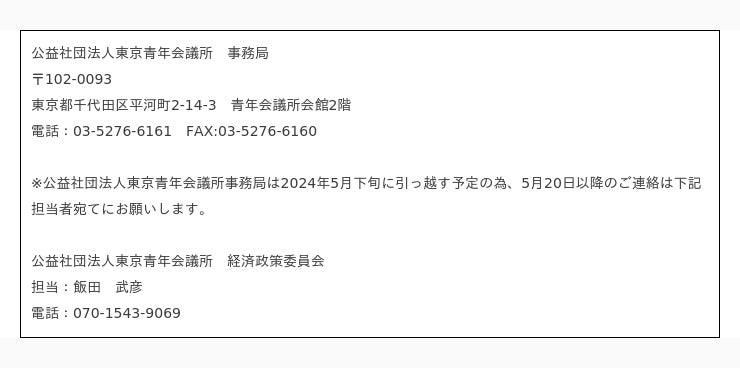 公式HP: https://tokyo-jc.or.jp/policy/economy/