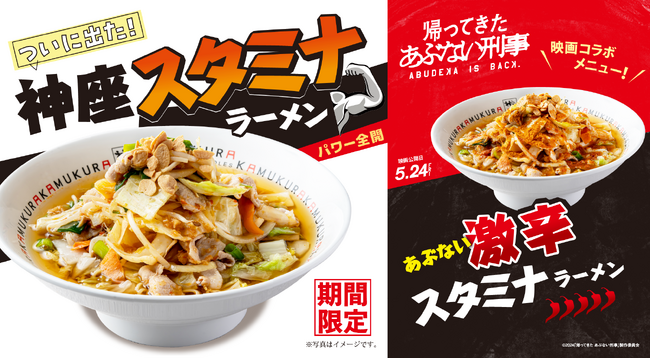 映画『帰ってきた あぶない刑事』コラボ!どうとんぼり神座が「神座スタミナラーメン」「あぶない激辛スタミナラーメン」を2024年5月21日(火)より期間限定販売開始!