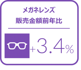 枚数前年比がプラスに推移し、平均価格も上昇した事により、メガネレンズ全体の金額前年比は3.4%増と堅調に推移した。特に単焦点レンズは金額前年比6.3%増と好調に推移し、市場を牽引した。
