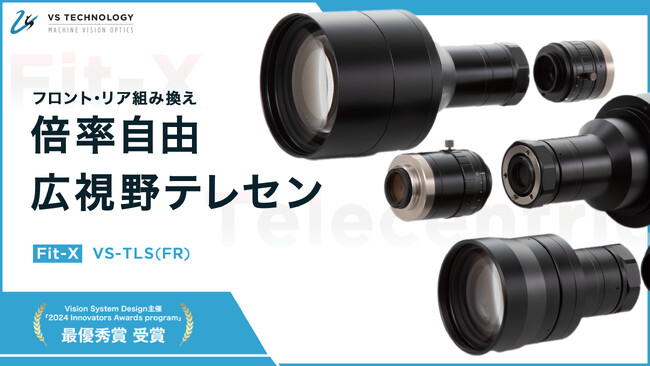 株式会社ヴイ・エス・テクノロジーは、2024年5月マシンビジョン業界におけるグローバルメディア Vision System Design 主催 「2024 Innovators Awards 」プログラムの審査において、最も優秀な1社が選ばれるレンズ、照明、光学製品カテゴリー部門にて最優秀賞を受賞致しました。VS-TLS(FR)シリーズは、業界初新レンズコンセプトFit-X(フィットクロス)を採用しフロントレンズ、リアレンズを2つに分割し掛け合わせることでお客様が必要とする様々な光学倍率にFitするコンセプトレンズです。導入後の仕様変更によって発生するコストを削減し環境に配慮した製品設計が特徴です。