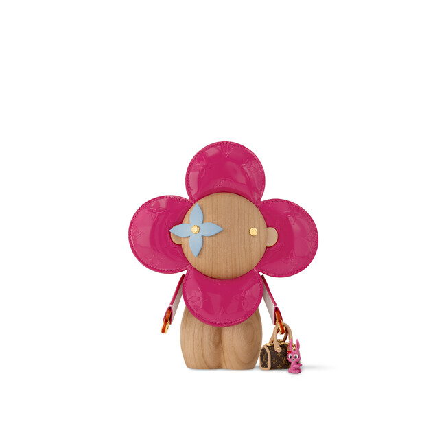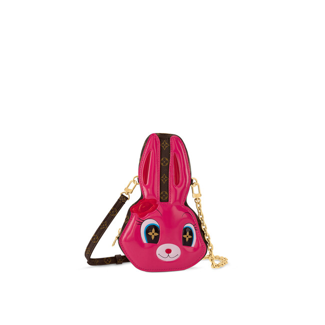 中国人アーティスト Sun Yitianが手掛けた「2024プレフォール」コレクションに登場するウサギのピンクのカラーをまとった「ヴィヴィエンヌ・ラビット」。チェリーウッドで愛らしく仕立て、モノグラム・フラワーの瞳とモノグラム・パターンをエンボス加工したパフ感溢れるレザーで模った花びらをあしらいました。「ヴィヴィエンヌ」は、ピンクのウサギを添えたミニチュアサイズのバッグ「スピーディ」を携えています。