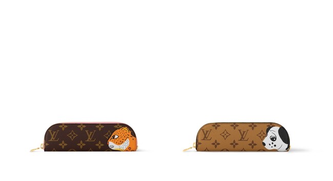 素材:(左)オレンジのタイガーがプリントされたモノグラム・キャンバス、(右)黒と白の犬がプリントされたモノグラム・リバース キャンバス