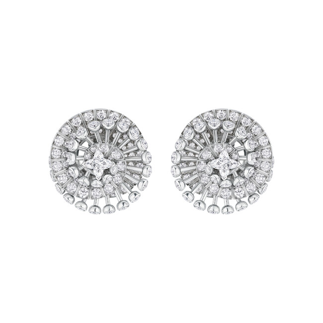 また、メゾンのハイジュエリー コレクション「Deep Time(ディープ タイム)」より、ホワイトゴールドとダイヤモンドの「Origin(オリジン)」ブレスレット、ホワイトゴールドとLVモノグラム スターカット ダイヤモンド2石、ダイヤモンドをセットした「Myriad(ミリアド)」イヤリング着用しました。