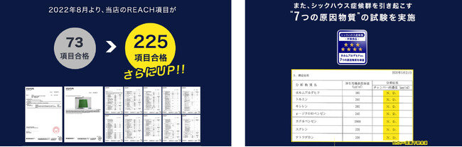 また、シックハウス症候群や発がん性など4つの原因物質の試験の実施においても基準に合格しており、ペットやお子様がいるご家庭でも安心してご使用いただけます。