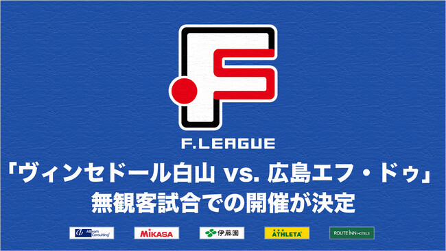 今シーズン、代替会場として使用予定の「若宮公園体育館」は、一部のFリーグ開催基準を満たさない設備がございます。これにより、Fリーグとヴィンセドール白山は、運営の安全を図るために6月23日(日)実施の「広島エフ・ドゥ」戦を無観客試合とすることを決定いたしました。