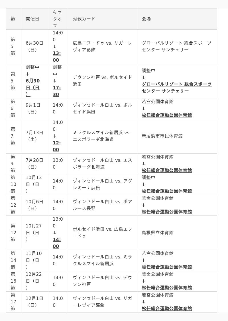 Fリーグ2024-2025 ディビジョン1・2(以下、F1・F2)の試合日程(開催日・キックオフ時刻・会場)を変更いたしましたのでお知らせします。