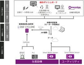 そこでこのたび、このような現場課題及び将来のビジョンに向けて、生産状況及び生産効率の可視化、故障予知に特化したSMSデータなどを一元管理する統合型ダッシュボードが実現できる「DSF Cyclone」を組み合わせたマクニカオリジナル総合ソリューションの導入を決めました。