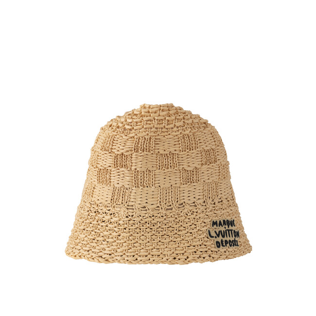リラックス感のある雰囲気でスタイリッシュな夏を満喫できる「ハット・ダミエ ラフィア」は、ラフィア(ヤシ)風の糸で全体に織り上げたダミエ・パターンが特徴の多用途に楽しめるアクセサリーを、柔らかなブリム(つば)にブラックで施した「Marque L.Vuitton deposee」の刺繍が引き立てます。ブリムは上や下に折り返すこともでき、夏の日々を涼し気に演出します。