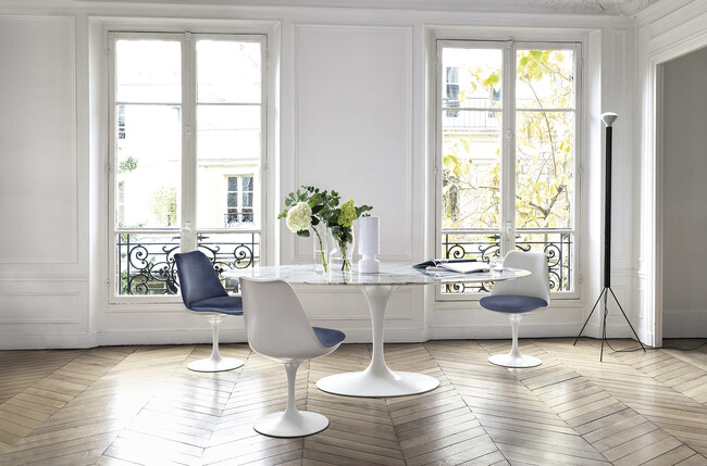 エーロ・サーリネンはアメリカ、JFK空港のTWAターミナルやセントルイス市のゲートウェイ・アーチのデザインでその名が世界的に知られるようになりましたが、彼のルーツはフィンランドにあります。北欧デザインの黄金期を象徴するようなオーガニックで流れるような曲線が描くサーリネンの特徴的なフォルムは、ノルとのコラボレーションで磨かれていきました。そのコラボレーションは1946年に始まり、1948年から1957年にかけて、モダンデザインのアイコンとなるさまざまなプロダクトを生み出しました。中でもサーリネンテーブルは、発売から半世紀以上経た現在でも色褪せることのないプロダクトで、ノルの掲げる「Modern Always」を象徴しています。この度、ノル85周年の節目に合わせて、サーリネンテーブルのスペシャルエディションを発売いたします。
