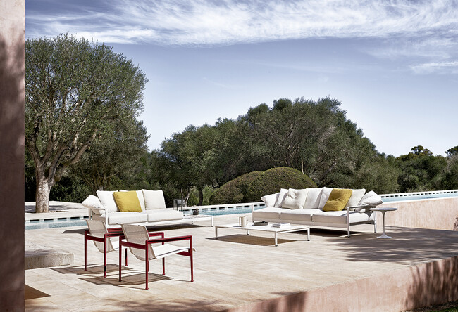 ピエロ・リッソーニとノルのコラボレーションは2007年に始まり、アヴィオ・ソファ、グラスホッパー・テーブル、KNシーティング・ファミリー、そして最近のマティック・コレクションやパノラミック・コレクションなど、軽快で美しいコレクションで今日まで続いています。リッソーニは昨年のミラノサローネで、アウトドアファニチャーにフォーカスし、彼のエレガントなスタイルを反映した、これまでにないアウトドアコレクションを発表しました。2シーターソファ、3シーターソファ、アームチェア、スツール、さまざまな形とサイズのコーヒーテーブルで構成されるこのコレクションに共通するデザイン言語は、直線的でシンプルなラインです。