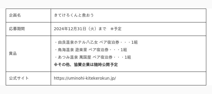 2023年度実施した「きてけろくんを救おう」企画から協賛宿が増え、パワーアップした「きてけろくんと救おう」企画が開始いたします。
