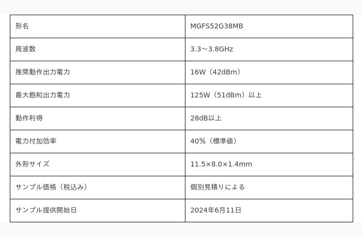 「5G massive MIMO基地局用16W GaN電力増幅器モジュール」サンプル提供開始