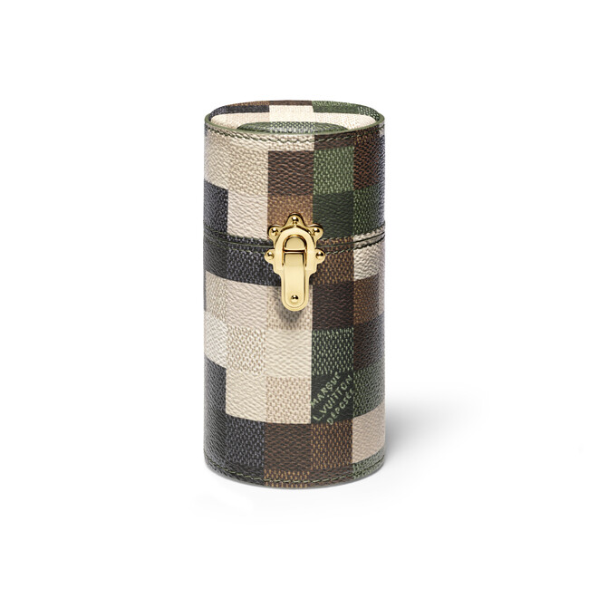 ルイ・ヴィトン フレグランスのシグネチャーである円筒状のボトルに入った「LVERS」は、太陽の光を反射、屈折し、それ自体が陽光のごとき存在に。プリズム仕上げにより、太陽の光が肌をゴールドカラーに彩るような、明るい光のエフェクトを連想させます。フレグランスと共に登場するトラベルケースと3本のボトルを収納できるフレグランス・トランクは、グリーンのダモフラージュ・モチーフ。ルイ・ヴィトンにおけるファレル・ウィリアムスのクリエイティブな表現の核をなすこのグラフィックは、メゾンのヘリテージであるダミエ・パターンとメンズ クリエイティブ・ディレクターのパーソナルなスタイルを組み合わせたものです。