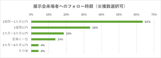 <展示会(対面・オンライン含む)の来場者へのフォロー時期(※複数回答可)>