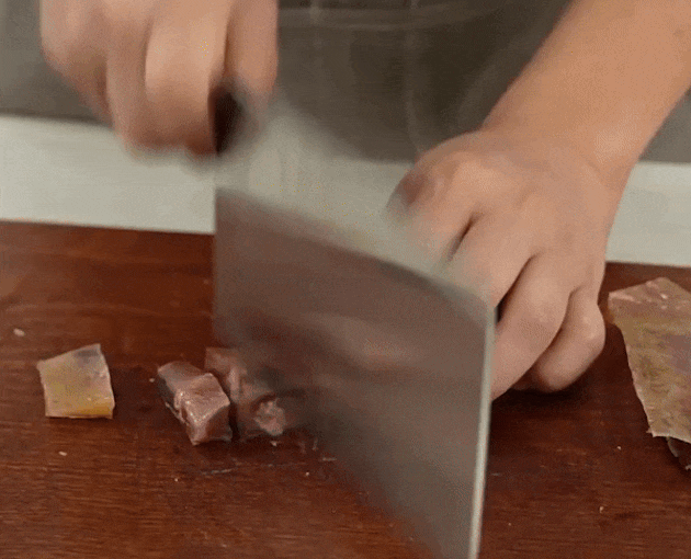 肉や野菜を切るだけでなく、骨を断つことも、食材を叩いて柔らかくすることもできます。広い刃を利用して切った食材をすくい取り、鍋に移すことも簡単。重さを活かして少ない力で効率よく食材を切ることが可能で、刃の側面を使ってニンニクや生姜を潰すことも最適です。