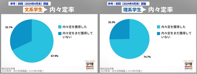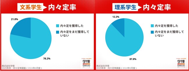 文理別では、文系が「78.2%」、理系が「87.8%」。理系の内々定獲得率は9割に迫る結果となりました。