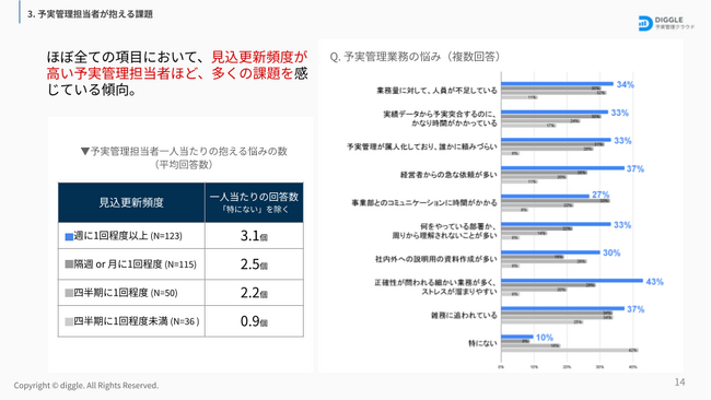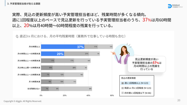 DIGGLE株式会社、予実管理の実態調査レポートを公開。経営の意思決定に資する予実管理には週1以上の見込更新が必要、担当者の約6割が月40時間超の残業
