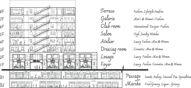 生まれ変わる西武池袋本店の全館および各フロアは、「MAISON(メゾン)」(フランス語で家・建物という意味)を建築デザインコンセプトとし、上質との出会いに相応しい「クラス感」と「洗練」、そして「アート」という3つの要素によって構成された空間をつくります。