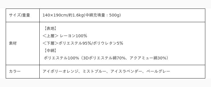 この『わたあめケット』は、ふわふわでボリューミーなのに軽い「3Dポリエステルわた」とひんやりしていて優しい肌触りの「レーヨン生地」を組み合わせることで、まるで“わたあめ”に包まれているかのような、寝心地を実現しました。