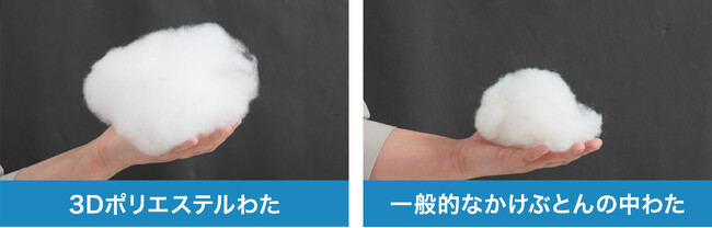 (画像:一般的な掛け布団に使われるわたと3Dポリエステルわたの比較)