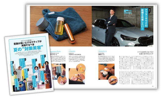年々、酷暑が進んで、とかくパフォーマンスが落ちる夏。何もしなければダメージを受け、老化街道まっしぐらな状況。そこで前回に引き続き、男性美容研究家の藤村 岳さん監修の下、様々な悩みを持ったビジネスエグゼクティブに誌上カウンセリングを実施。また、トラブル防止のための厳選された夏コスメも一挙に紹介します。
