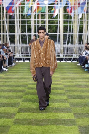 ルイ・ヴィトンの2025春夏メンズ・コレクションは、地球に共生する人類を祝福します。私たちが故郷と呼ぶこの惑星をズームアウトし、私たちの種族を太陽系から描いたこのコレクションは、謙虚に広がり、力強く調和しています。国際的なコミュニティがパリに集結するなか、ファレル・ウィリアムスは、ルイ・ヴィトンのグローバルなメンタリティが持つ団結力について考察します。メゾンの心を広げる旅の遺伝子を活性化させたコレクションは、世界中の私たちを結びつける類似性の度合いを表現しています。同じ太陽に照らされた地球上のすべての人間にある肌色のニュアンスを、複雑な技巧を駆使した同系色のシルエットで表現しました。これは、同じ血と肉によりできた多様な種である人類を、マクロとミクロの視点からとらえた関係を示しています。